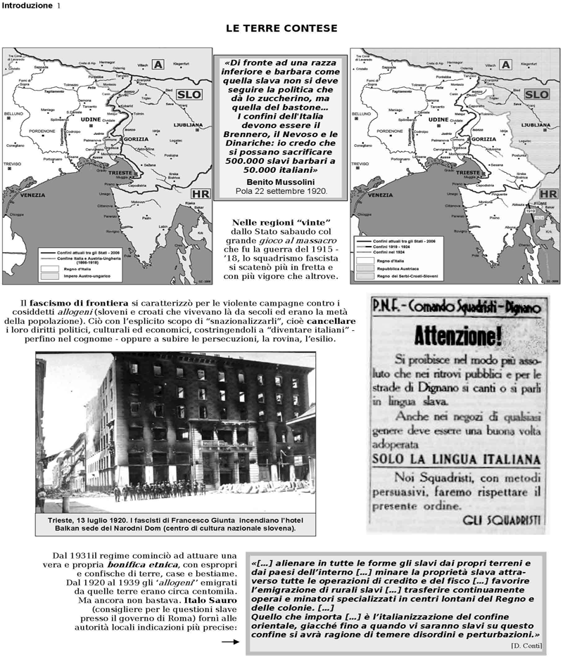 Ma perché è avvenuto questo rovesciamento? La risposta possiamo probabilmente trovarla negli ultimissimi fatti “internazionali”. È chiaro per noi che “l’autentica riconciliazione della Repubblica” per molti è, del tutto coscientemente, funzionale alla proiezione italiana nelle peggiori avventure neocoloniali, ad esempio nella prossima campagna di Libia. Reversione alla quale, ricordiamolo, ha dato un potente impulso l’ex presidente della Repubblica Giorgio Napolitano, che nel 2007 e nel 2008 ha dettato la linea su entrambi fronti, quello del “confine orientale” e quello degli interventi armati all’estero: la “riconciliazione” dovrebbe fare degli italiani un unico blocco a sostegno di queste politiche. E ad un simile progetto noi, con le nostre forze, continueremo ad opporci.
